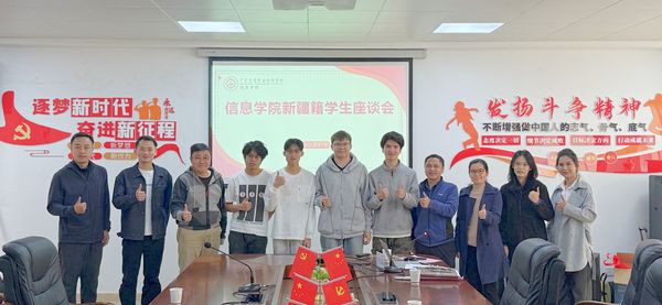 信息学院召开新疆籍学生座谈会发表时间:2025-12-05 08:59 11月27日,信息学院在明德楼305会议室组织召开新疆籍学生座谈会,围绕学风建设、安全教育、实习就业、个人发展与社会责任等主题展开深入交流。信息学院党委书记陈秀君、党委学生工作部副部长钟海生、信息学院党委副书记陈振宇、党委学生工作部努扎提阿依·吐尔逊、李江鹏出席会议。座谈会由辅导员李形影主持。