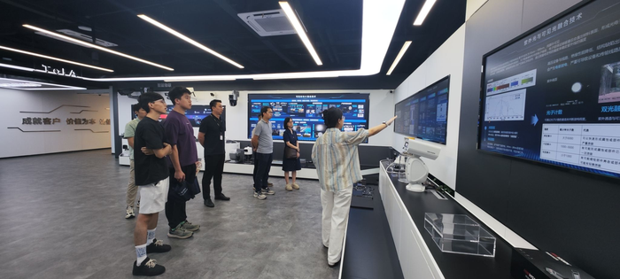 学院一行首先参观了海康威视广东业务中心的企业展厅。公司专业讲解员对海康威视从前沿视频监控技术到智能感知设备的发展演变,以及其在人工智能、云计算、大数据、物联网等领域的创新产品与解决方案进行了介绍。师生们直观地领略到海康威视以智能物联为核心、运用AI赋能千行百业的深度与广度。