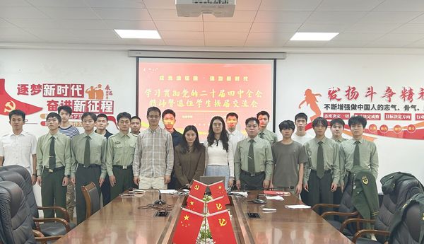 信息学院举办学习贯彻党的二十届四中全会精神暨退伍学生工作室换届交流会发表时间:2025-12-17 08:59 为学习贯彻党的二十届四中全会精神,切实推进退役军人服务保障工作,搭建退伍学生交流成长的平台,顺利完成征兵工作站换届交接,12月11日,信息学院“戎光续征程・建功新时代”学习贯彻党的二十届四中全会精神暨退伍学生换届交流会在明德楼305室举行。信息学院辅导员王锐、丁欣然及全体在校退伍学生共同参与了此次交流会。活动由辅导员李桃主持。