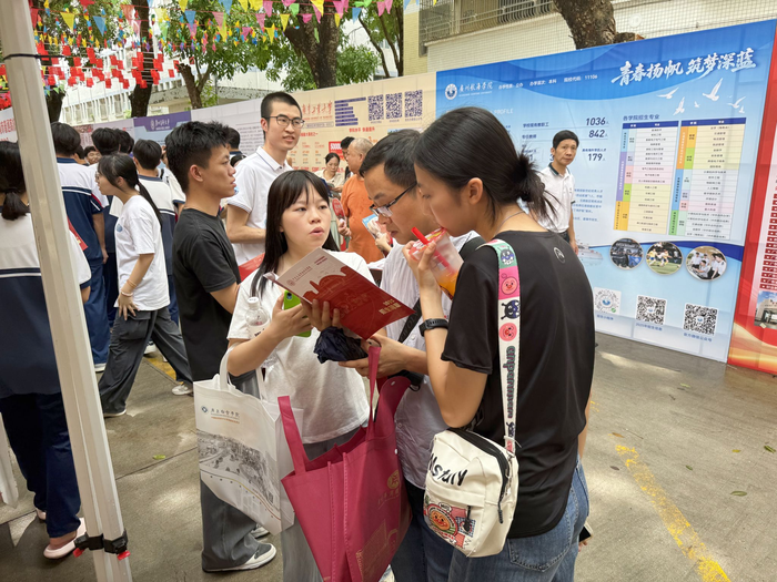 信息学院赴汕尾市开展招生宣传工作发表时间:2025-07-03 14:49 为精准做好2025年夏季高考招生宣传工作,进一步提升生源质量,6月24日,信息学院赴汕尾市林伟华中学参与汕尾市普通高校招生咨询会,向当地家长、学生就学院2025年招生计划及学院办学特色等全力做好咨询服务工作。
